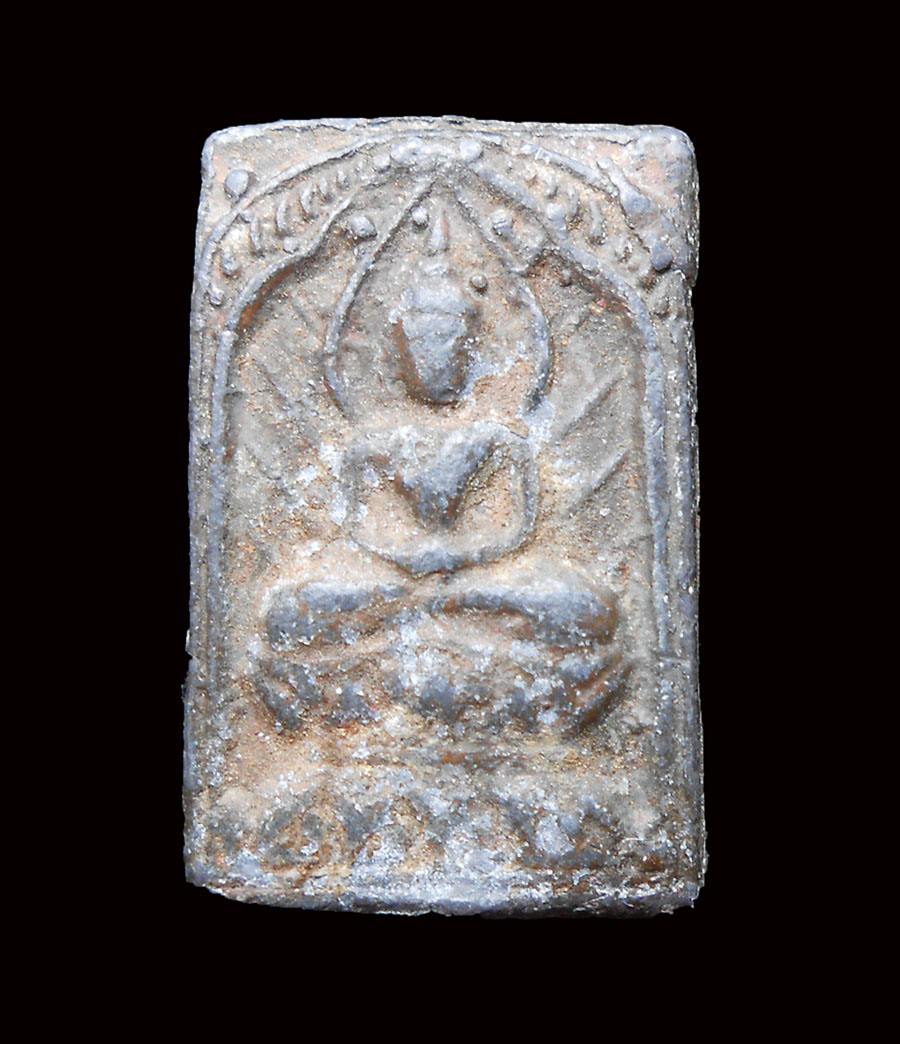 0187: หลวงปู่ศุข พิมพ์ประภามณฑลรัศมีเนื้อชินตะกั่ว หลังยันต์นูน