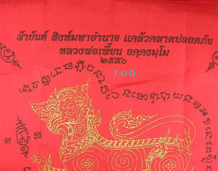 bt023: ผ้ายันต์สิงห์มหาอำนาจ แคล้วคลาดปลอดภัย หลวงพ่อเพี้ยน วัดเกริ่นกฐิน