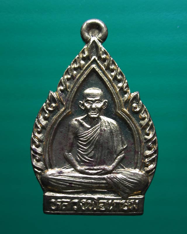 เหรียญใบสาเกหลวงพ่อเกษม เนื้อทองฝาบาตร ปี2538 (1)