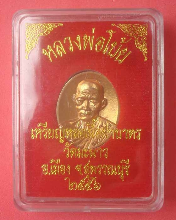 เหรียญหล่อเนื้อทองฝาบาตรพิมพ์รูปเหมือนครึ่งองค์ทรงรูปไข่หลวงพ่อโบ้ย วัดมะนาว ต.ทับตีเหล็ก อ.เมือง จ.สุพรรณบุรี รุ่น เฮง เฮง เฮง พ.ศ.2556 พุทธคุณ เมตตามหานิยม แคล้วคลาดปลอดภัย